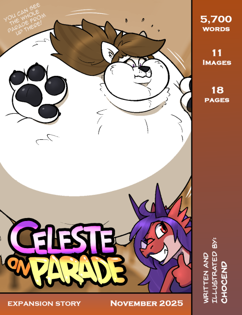 Celeste the arctic wolf is thrilled that she gets to see the annual parade in person this year, and even more thrilled that she gets to take pictures of all the awesome parade balloons to show her girlfriend later. But while searching for a better view, she encounters eccentric dragoness Claire, who has some "big" plans in store for her...